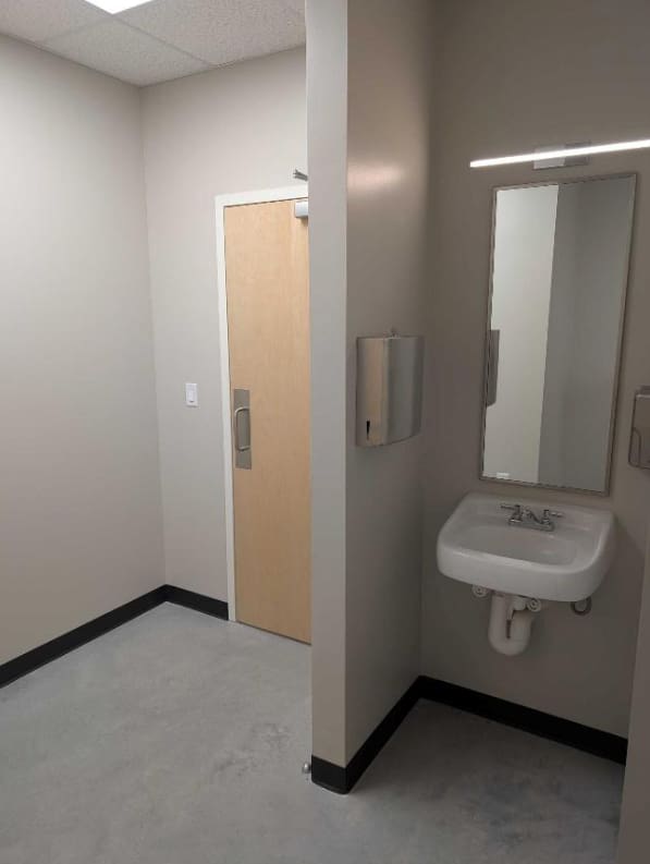 The primary operations center was thoughtfully designed to support both productivity and employee well-being. Interior spaces include open office areas with cubicles, private offices for daily operations, a full break room with kitchen, a dedicated fitness area, locker rooms, and quiet nap rooms. These features allow personnel working extended or emergency shifts the opportunity to rest and recover, reducing fatigue-related safety risks and supporting long-term operational readiness.
